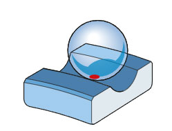 球与轴承内外圈滚道进行点接触。随着作用于轴承的载荷越来越大,接触点变成一个椭圆形区域。接触区域小则滚动摩擦也小,从而使得球轴承能够适应高速运行,但其承载能力有限。