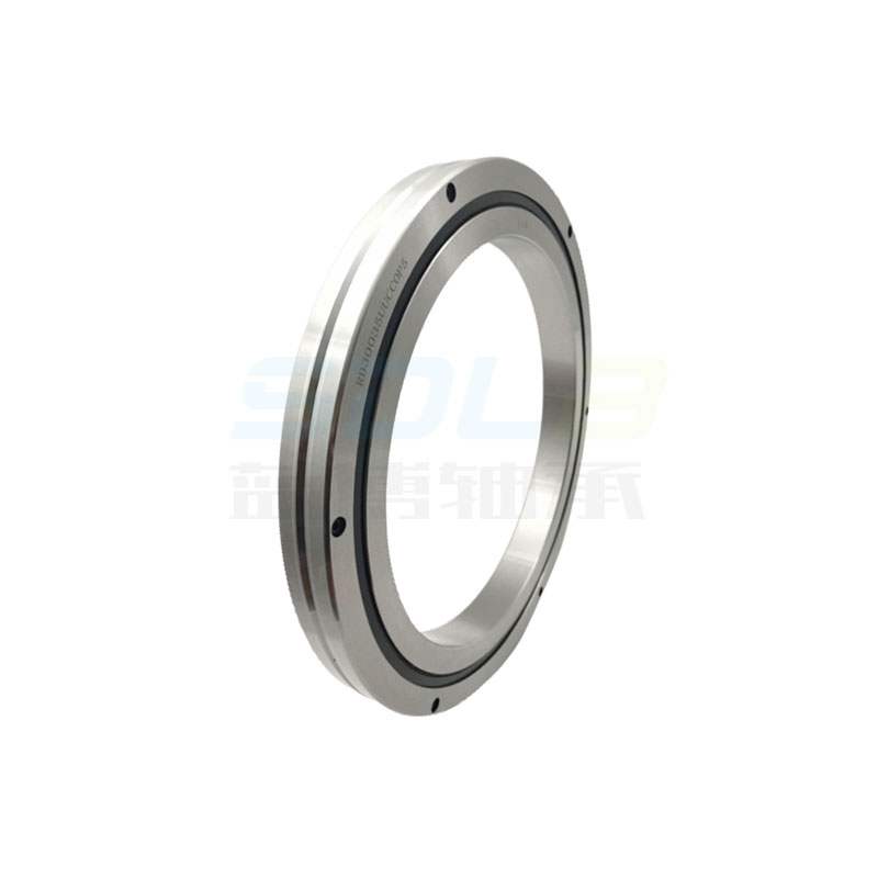 概述:RB交叉滚子轴承属于交叉滚子轴承中很基本的一种类型,该轴承是分割型外环,内环为一套结构,体积较小,适合于对内环转动精度有较高要求,整个结构主要采用的是滚子相互垂直交叉的方式,并且在每一个滚子之间都安装有一个隔离块,这样可以有效地防止滚子的倾斜,也可以有效地防止滚子的相互摩擦和转动扭矩的增大,从而有效地避免了滚子相互锁定的情况,并且 RB交叉滚子轴承的内外环是分开的,因此可以调节间隙,在施加预压的情况下也可以得到高精度的转动运动。