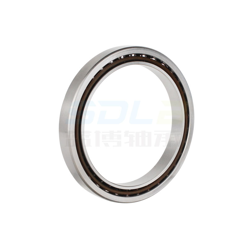 概述:薄壁角接触球轴承与薄壁深沟球轴承、薄壁四点接触球轴承的区别在于其沟道的形状,薄壁角接触球轴承(A型),滚道与球是呈角接触的,滚道半径的圆心偏离钢球的中心线,并且以中线为基准对称分布,角接触球轴承的接触角定义为承载作用线和径向平面之间的夹角,接触角可分为15°(代号:C)、25°(代号:AC),30°(代号:A)、40°(代号:B),接触角越大,同样尺寸下能承载轴向载荷的能力越高,角接触球轴承在承受纯径向载荷的同时,由于滚动体载荷作用线与径向载荷作用线不在同一径向平面内,由此会产生内部轴承分力,因此大多数角接触球轴承均为成对安装,且相互压紧,以相互平衡产生的轴向分立,并提高整个组件轴向刚性,主要的装配方式有背对背(DB)、面对面(DF)、串联(DT)安装方式。